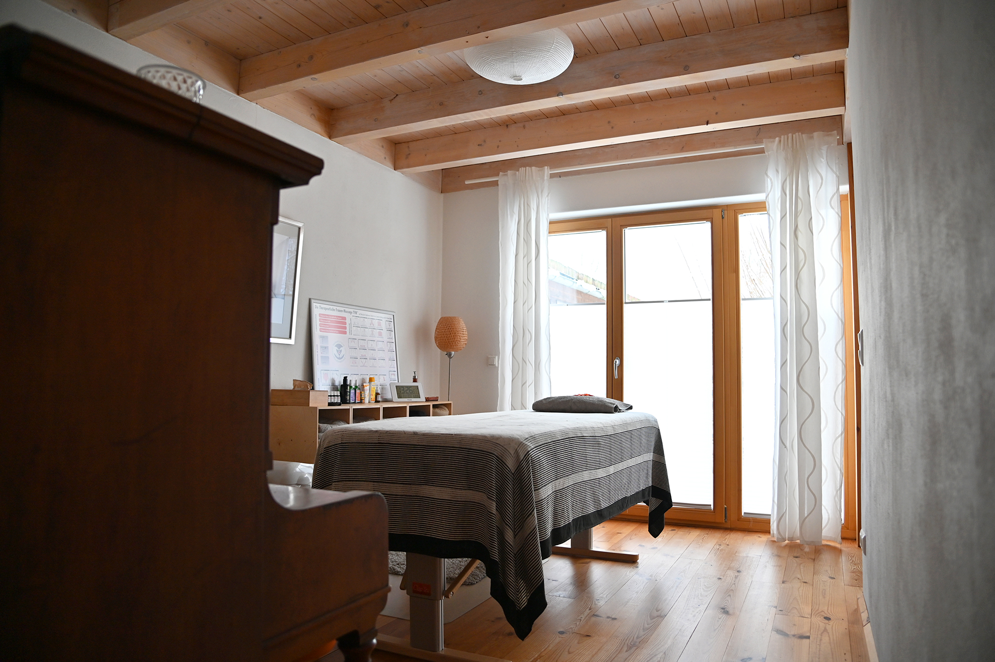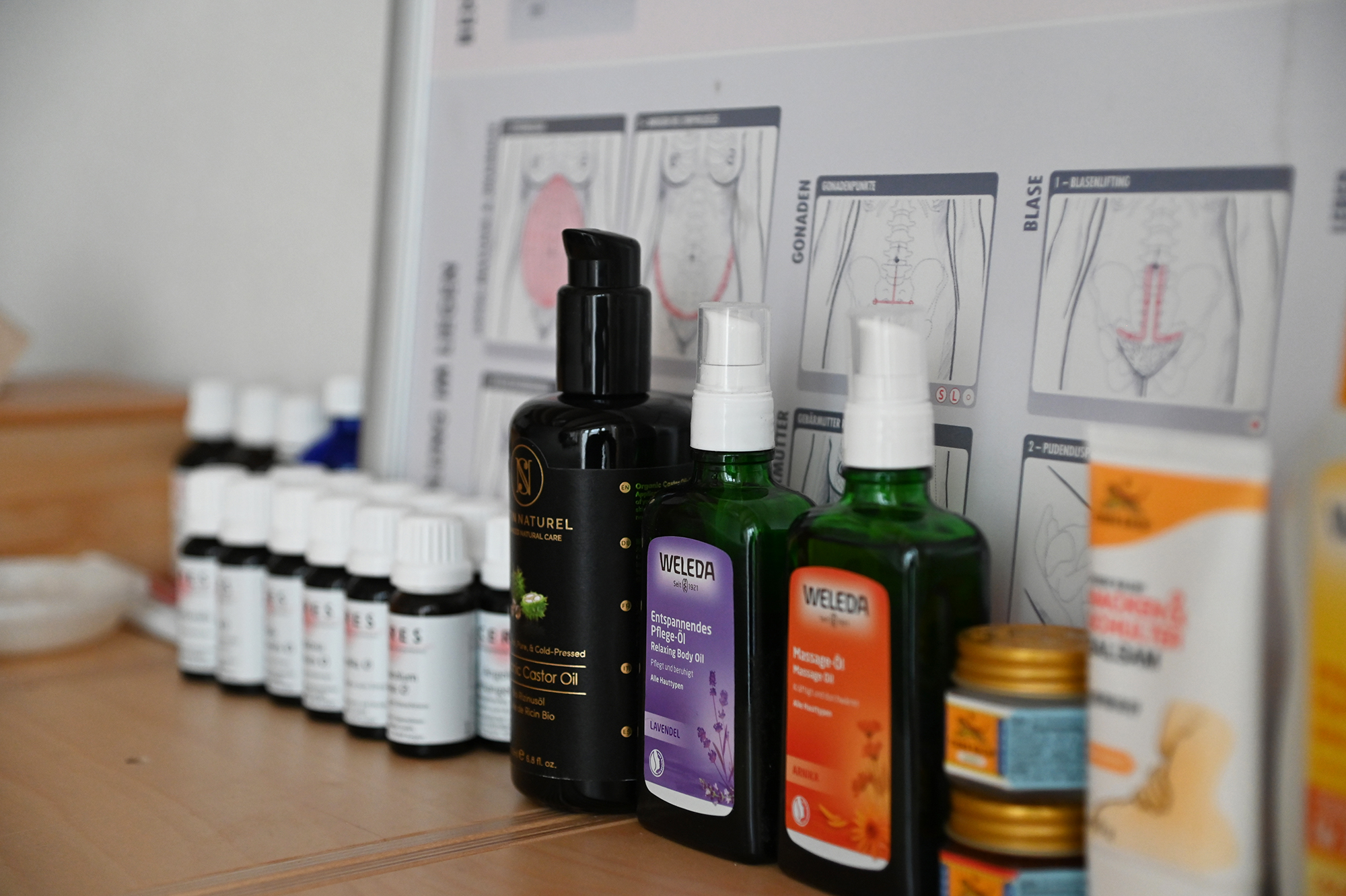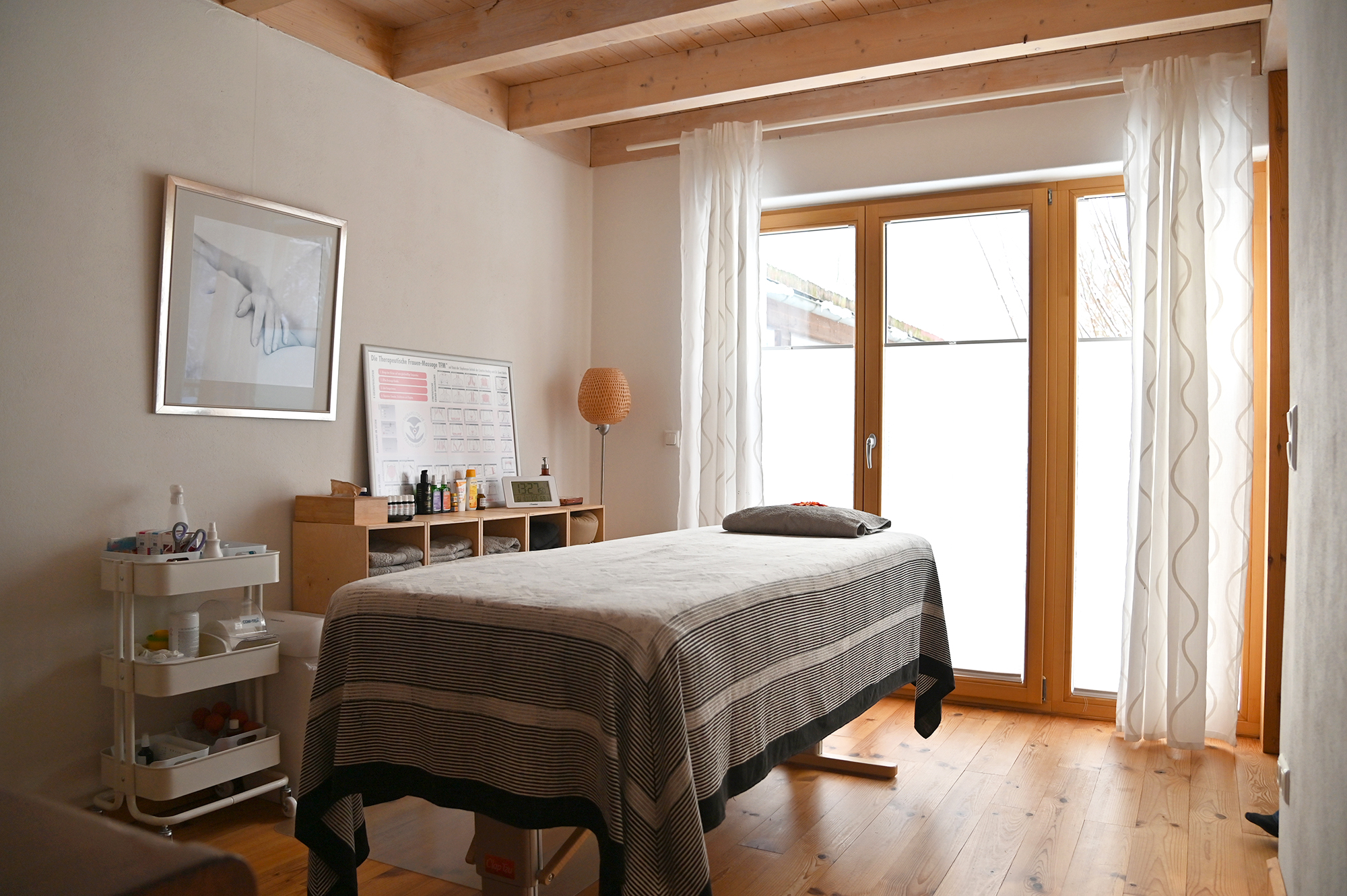 Meine Praxis, gleich am nordöstlichen Stadtrand von Hamburg, ist Der Frauenraum – buchstäblich ein Raum für Frauen, um sich zu öffnen und anzuvertrauen. Hier treffen wir uns zu persönlichen Terminen. Dich erwarten ein behaglicher Gesprächsraum mit fachlicher Bibliothek, zahlreichen Modellen und Anschauungsobjekten sowie ein wohliger Raum für die heilpraktischen Anwendungen wie z.B. Massagen und manuelle Therapien. Im Bad hast du bei Bedarf die Möglichkeit, dich zu erfrischen. Komm herein, atme durch – und lass uns sehen, wie ich dich unterstützen kann.
