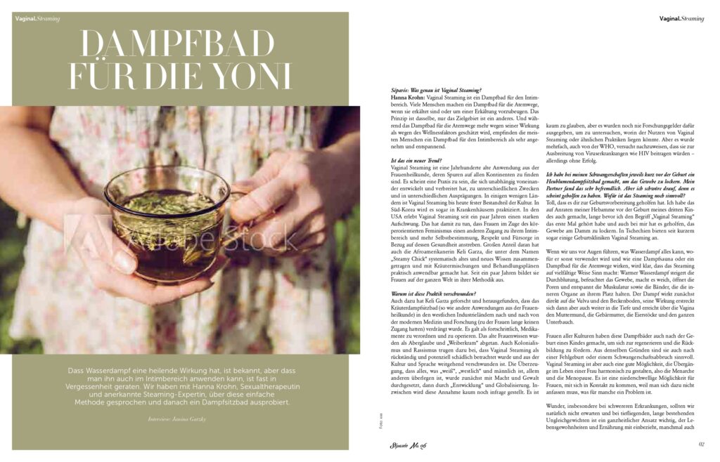 Janina Gatzky, die Chefredakteurin vom Séparée Magazin hat mich ausführlich zu Vaginal Steaming, dem Dampfsitzbad für den Intimbereich interviewt und ab sofort kannst du das Heft im Handel kaufen.